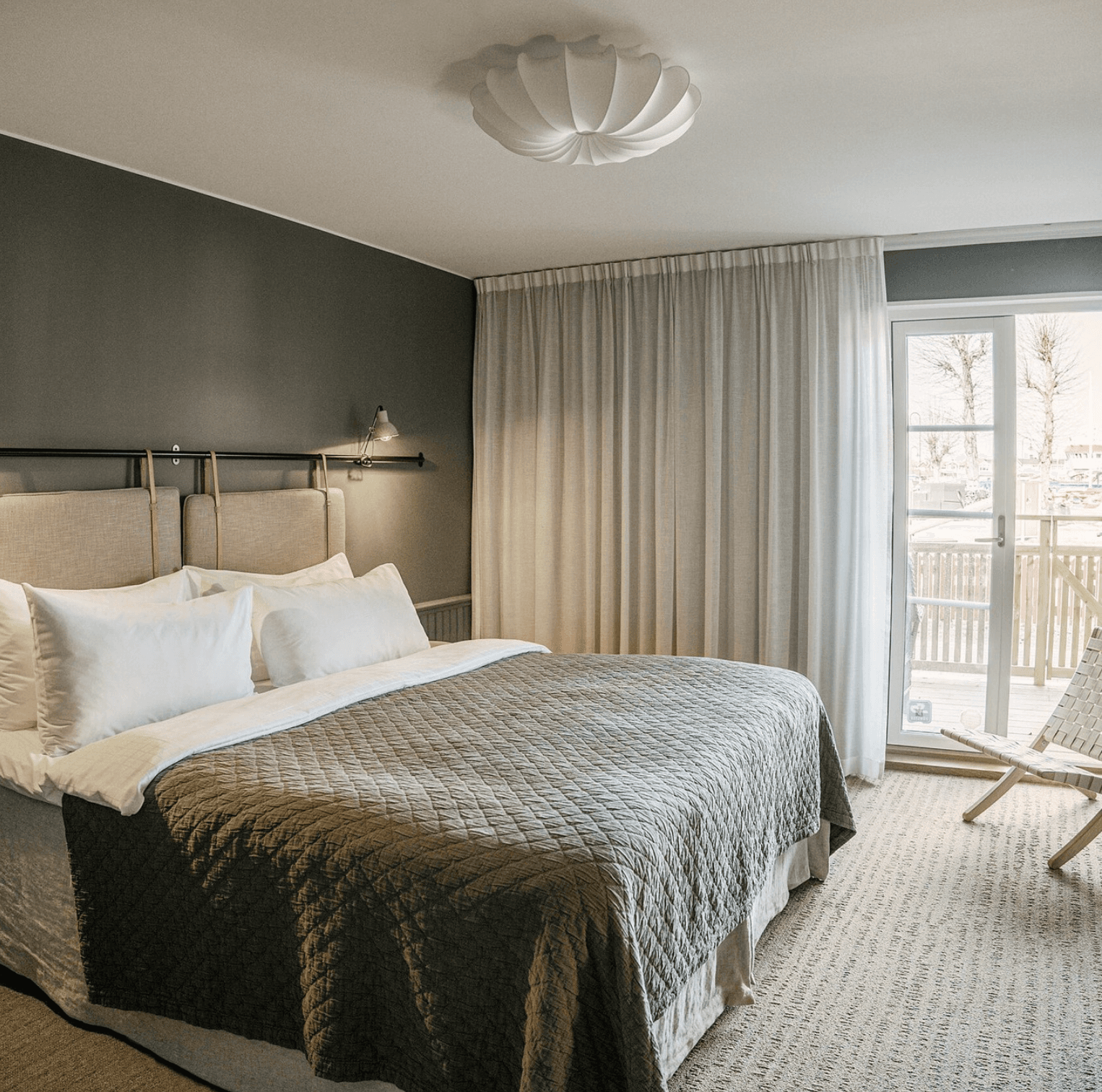 Calm and inviting, with a private terrace and a blend of modern design and local touches. The room creates a serene and authentic atmosphere, perfect for a relaxing Swedish retreat.